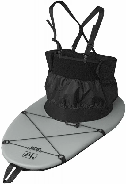 Zuverlässige Spritzdecke für anspruchsvolle Touren, mit verstellbaren Schulterträgern. Am Neoprenteller sind vier Fixierpunkte mit einer Gummiverspannung eingearbeitet, der Kamin ist aus atmungsaktivem Gewebe und hat einen breiten Neoprenabschluß. Mit Latexbeschichtung innen und abriebfester CrossTex Kaschierung auf dem Teller. Die Decke hat einen 8 mm Gummi und ist so auch für GFK-Süllränder geeignet.