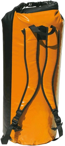 Seesack mit Rollverschluß aus strapazierfähigem Planenmaterial (PVC beschichtetes Polyestergewebe ca. 500 g/m²), vollständig verschweißt. Gepolsterte, ergonomische Schulterträger und ein Tragegriff gehören zur Ausstattung.